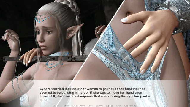 Now, hereâs where it gets brilliant. This choice doesnât just affect Michael. That night, through the erotic link mechanic, Lynara might experience a dream. If Michael chose ruthlessness, she dreams of shadowy corruption. If he chose the secret warning, she dreams of duplicity and hidden alliances. This could then influence her next dayâs choices, perhaps making her more suspicious of a fellow angel or more determined to seek truth. One choice in one timeline actively shapes the emotional state and potential paths in the other.